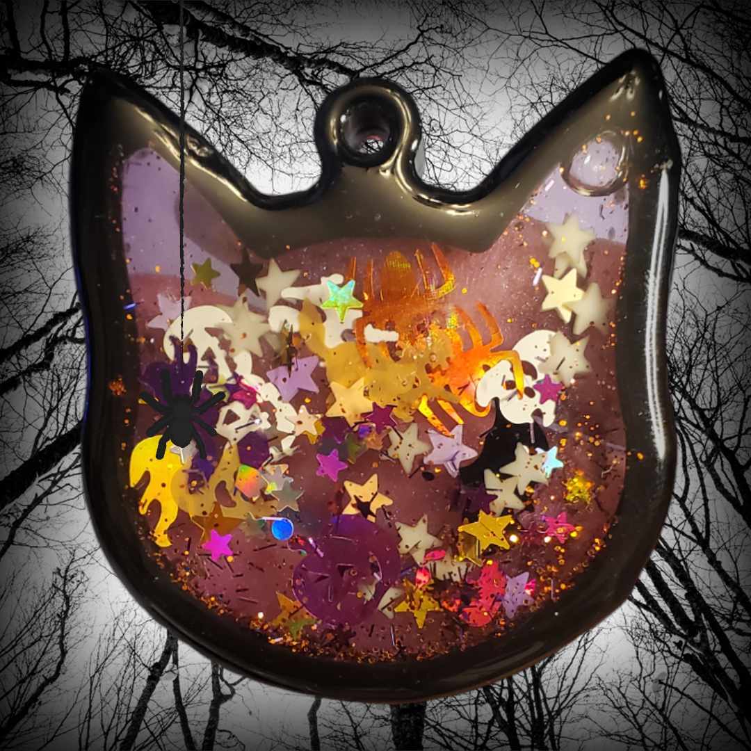 Keep the spooky vibes alive all year long with our Kitty Head Halloween Shaker Keychain! Available in Black, Purple, Orange or Green bases and filled eerie fun Halloween inclusions! Non-Halloween Kitty Heads coming soon!