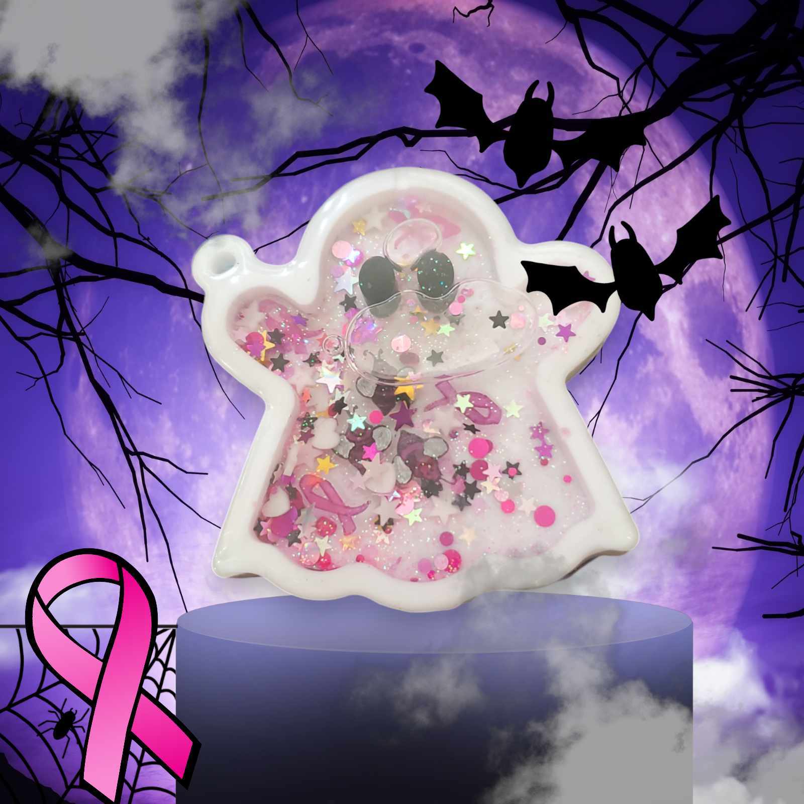 Embrace the spirit of spookiness throughout the year with our Ghost Shaker Keychain! Choose from classic white or black options, each packed with a variety of hauntingly delightful inclusions that embody our signature spooky ghosts. For a special touch, check out our Breast Cancer Awareness Boo-Bees Ghost shaker. This charming design is filled with hearts, glitter, pink ribbons, and adorable pink bees, all sprinkled with extra sparkle! Available in both white and pink, simply select White-B or Pink-B to get your Boo-Bees Ghost.